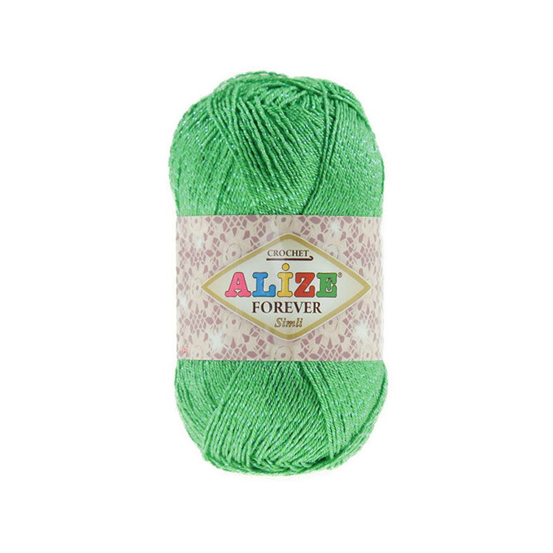 MARKENNAME: Alize GARNNAME: Forever Sim GARNGEWICHT: Größe 0 / Spitze STRANGGEWICHT: 50gr / 1,76 oz LÄNGE: 300mt / 328 Yards NADELGRÖSSE: 2-3,5mm MISCHUNG: 96% Mikrofaser-Acryl 4% Metallic